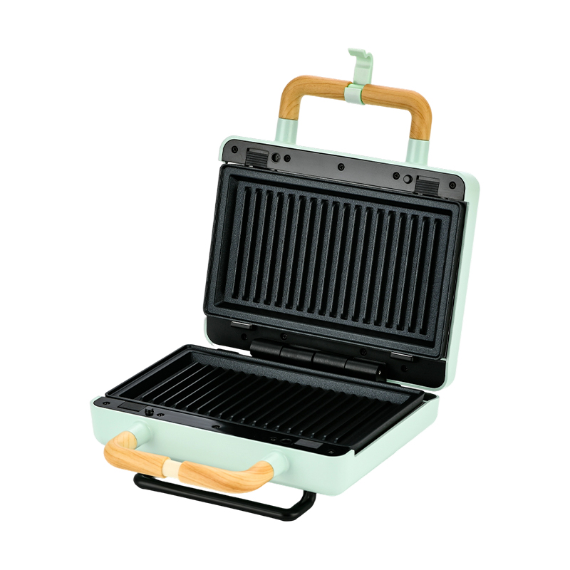BJX-S003 800W可替换烤盘双片三明治机提供实用的多功能烹饪体验,配备四款可拆卸不粘烤盘:三明治盘、烧烤盘、华夫饼盘和煎鱼盘。800W加热元件确保快速均匀加热,木纹手柄提供安全舒适握感。烤盘可轻松拆卸清洗或更换,使备餐过程简单卫生。紧凑机身设计配备电源线收纳功能及防烫外壳,非常适合小厨房或公寓使用。该机型能快速制作三明治、华夫饼、烤肉或煎鱼,将高效烹饪、多功能性与用户友好操作融合于时尚家电中。