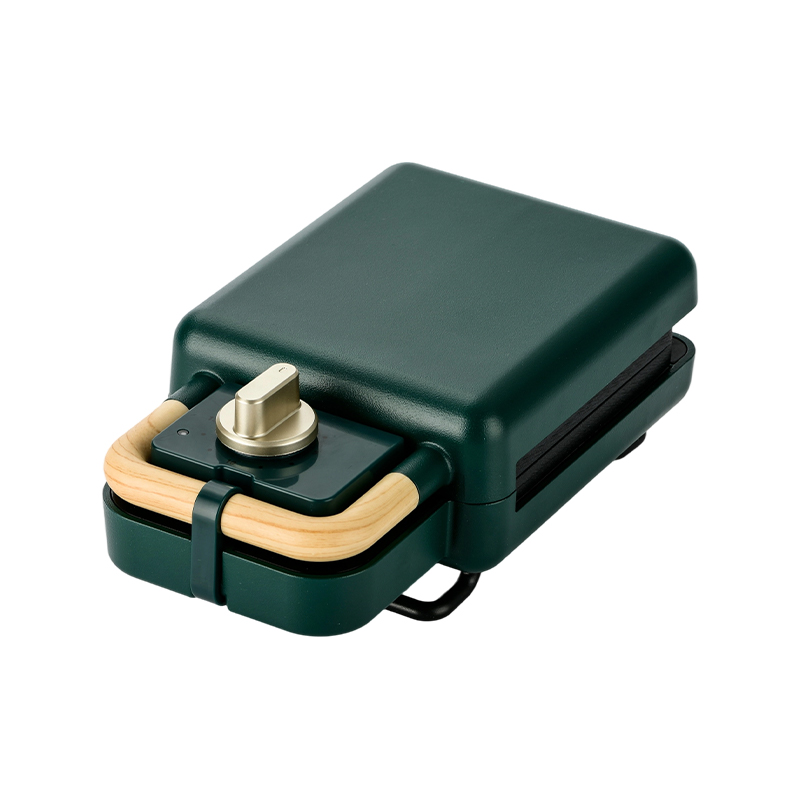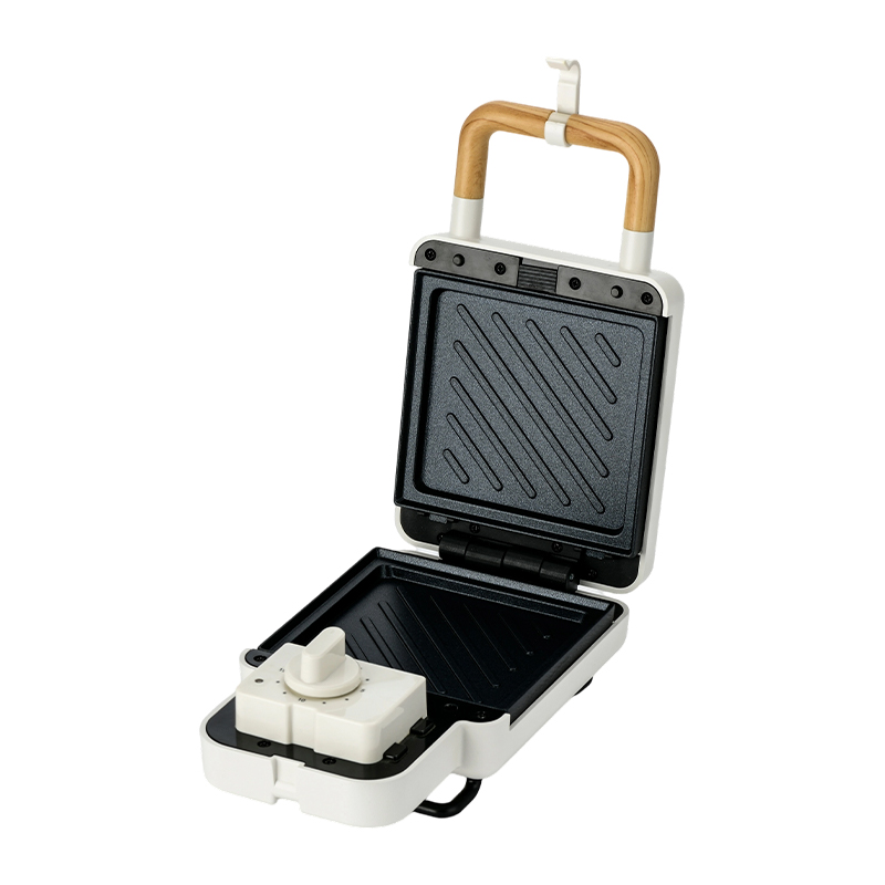 BJX-S006 带15分钟定时单片可拆洗烤盘三明治机配备六种可替换烤盘(三明治、华夫饼、甜甜圈、蛋糕球、煎鱼盘),内置15分钟定时器实现精准控时。木纹防烫手柄结合快速均匀加热系统,可拆卸不粘烤盘便于清洁。紧凑设计适配公寓/宿舍场景,可轻松制作早餐、甜品与煎烤小吃,集高效烹饪与时尚美学于一体。